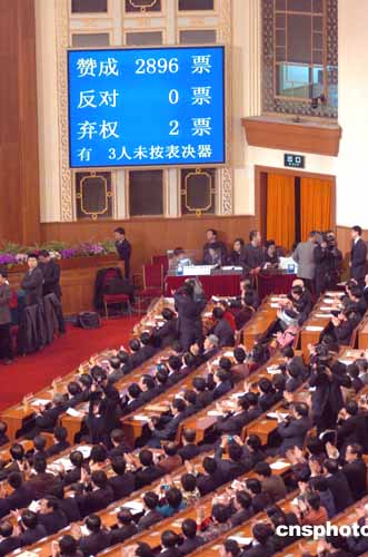 图:全国人大高票通过反分裂国家法