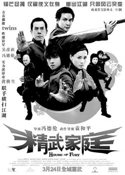 中新网3月15日电 据北京娱乐信报报道,2005年以来,首部港产引进内地的动作大片《精武家庭》将在本月24日全面出击内地市场,这部电影不仅汇集了黄秋生、冯德伦、吴彦祖、TWINS、王敏德、何超仪等超强的明星阵容,而且还请来了动作大师袁和平出任动作导演。