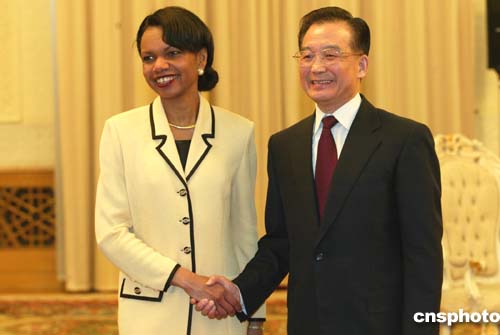 快讯:中国国务院总理温家宝会见美国国务卿赖斯