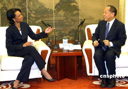 同日,中国国务委员唐家璇会见了赖斯。唐家璇说,处理好中美两国关系需要增强相互理解和互信。中方愿与美方共同努力,牢牢把握合作这条主线,妥善处理分歧,共同维护和促进亚太地区乃至世界的和平、稳定和繁荣。