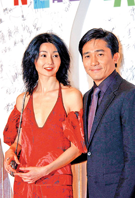 梁朝伟与张曼玉一同抵达现场,手拖手尽显温馨甜蜜;身穿红色低胸露背晚装的张曼玉甫到场,二百位传媒即蜂拥上前拍照,及后周润发到场同样引起哄动。