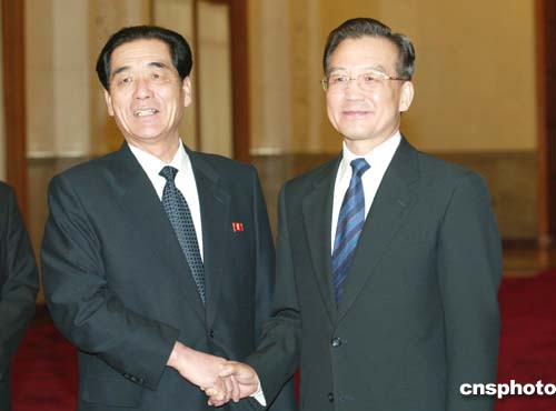 温家宝与朝鲜总理朴凤柱举行会谈 极评价中朝关系