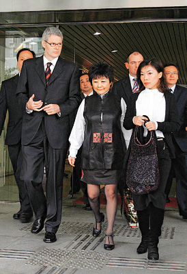 在历时10分钟的提讯过程中,“见惯大场面”的龚如心表现冷静。昨日显得容光焕发,除了一头整齐短发外,更以黑色唐装配上一条黑色超短裙,及一对黑色长丝袜及高跟鞋,唇上更涂上桃红色口红。在提讯后约10分钟,龚如心便付妥保释金,在大批保镖的护送下,面带笑容离开东区法院。