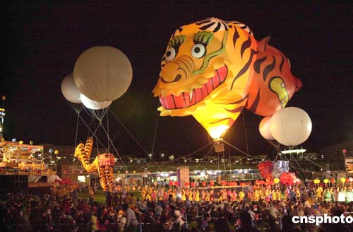 日本爱知世博会三月二十五日开展。当晚,在世博广场举行庆祝表演“生命的节日”,一个巨大的虎形热气球款款升空,场面颇为壮观。作者:王健