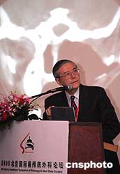 二00五北京国际鼻颅底外科论坛三月二十六日在北京开幕,香港大学医学院教授、耳鼻咽喉外科专家韦林为与会者做专题演讲。作者:任晨鸣