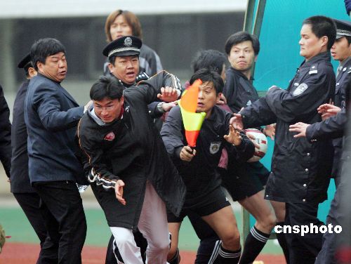 中新网3月28日电 解放日报消息,在发生了球场暴力事件后,上海足协昨天决定,对前天在足协杯比赛中攻击主裁判杨志强的九城俱乐部进行严厉处罚。