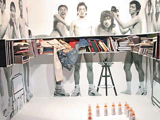 中新网3月28日电 据联合新闻网报道,蔡康永跟男友佐治的感情增温,台北敦南诚品的艺术展“理想的书房”中,有12个书房,其中蔡康永的书房里,有12位几乎全裸的男生热情演出,其中化名“曲家瑞”的男生就是佐治,佐治在蔡康永的作品中大胆裸露演出,堪称爱到最高点。