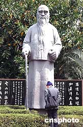 清明前,台北“国父纪念馆”中山公园翠湖湖畔的于右任铜像,虽地处僻静之处,仍吸引不少市民观瞻。这位辛亥革命参加者、国民党元老,曾在去世前写下传遍海内外的名作《望大陆》,表达思乡之情。陈水扁担任台北市长时,城建重新规划,于右任铜像于一九九八年从热闹的仁爱路圆环搬至现址。作者:董会峰