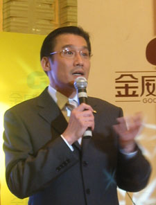 中新网3月28日电 刚在《太行山上》扮演硬汉军人的著名香港影星梁家辉,于3月28日下午出现在人民大会堂浙江厅,名为“赏心悦目,金威男人”的发布会正在这里举行。