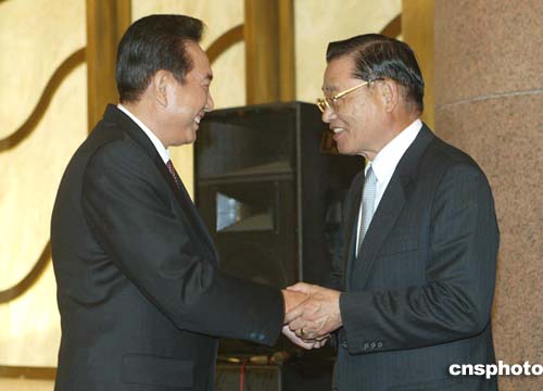 图:江苏省委书记李源潮会见国民党副主席江丙坤一行