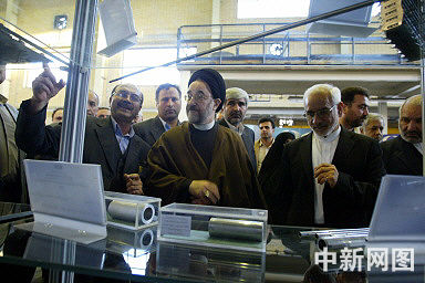 中新网3月31日电 据路透社报道,为了澄清其核计划无军事目的,伊朗总统卡塔米周三陪同一个记者团下到地下,参观伊朗一处核电站的核心部分。