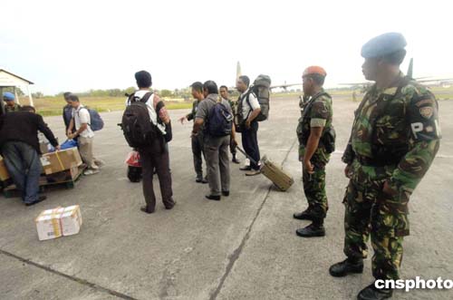 3月31日,印度尼西亚棉兰某军用机场召集世界各地电视台及报章记者,安排乘当地军用飞机到尼亚斯岛灾区采访。作者:洪少葵