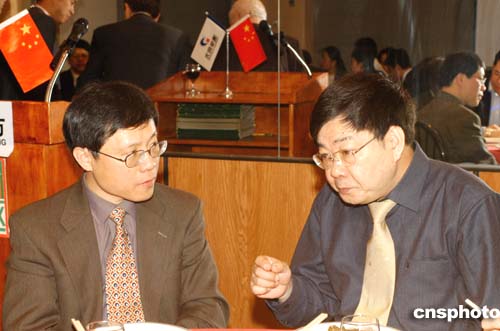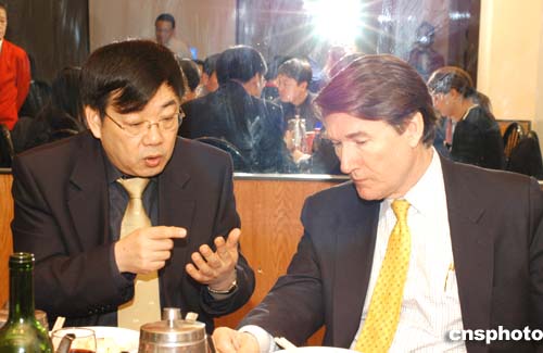 清华同方董事长荣泳霖与美中关系全国委员会会长何立强交流。作者:龚文漠