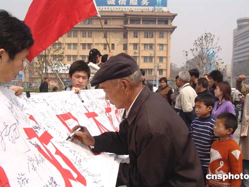 4月2日下午,洛阳数千网民自发来到东周王城广场举行反日“入常”签名活动,签名现场群众情绪激昂,争先发表“坚决反对日本成为联合国常任理事国”演讲,表达国人心声。不少学生、路过的市民和游客也主动上前签名支持,人们纷纷表示:我们热爱祖国,热爱和平,决不能容忍日本篡改历史事实,必须坚决粉碎日本军国主义复活的野心。作者:巩卫东
