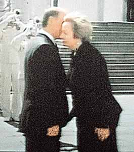 镜头三:这是普京夫妇,在尽量小声地窃窃私语。他们什么话都没说,但两人的姿势比任何话语都美观,从这个创纪录的镜头上可以清楚地看到这一点。