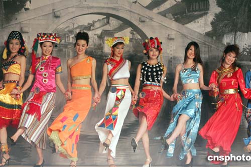 “古镇西塘杯”二○○五年国际旅游小姐冠军总决赛北京赛区选拔赛四月五日在北京SOHO社区广场举行,来自五个少数民族的二十名参赛选手经过民族服装表演、才艺展示,以及旗袍、泳装展示、旅游知识问答等多个环节的比拼。