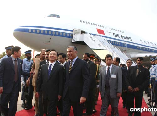 温家宝总理抵达巴基斯坦访问