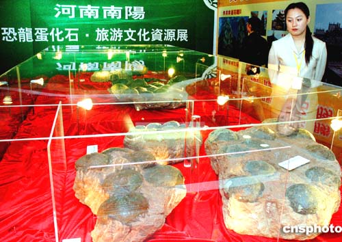 南南阳恐龙蛋化石〔香港〕展﹐六日在香港花润大厦开幕﹐届时“河南南阳〔香港〕恐龙蛋化石﹐旅游文化资源展示推介投资贸易洽谈会”同时举行。目前中国发现恐龙蛋化石有8科12属25种﹐其中在南阳发现的恐龙蛋化石就有6科9属13种﹐分别占国家总数的二分之一﹐占世界总数的三分之一。作者:宋吉河