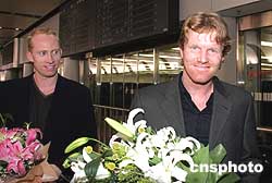 四月六日,前世界排名第一的网坛大腕考瑞尔(右)飞抵北京,将出席八日举行的中国网球风云榜颁奖典礼。考瑞尔是上个世纪九十年代叱咤网坛的风云人物之一,与桑普拉斯、阿加西、张德培一起并称美国“四大天王”。作者:武仲林