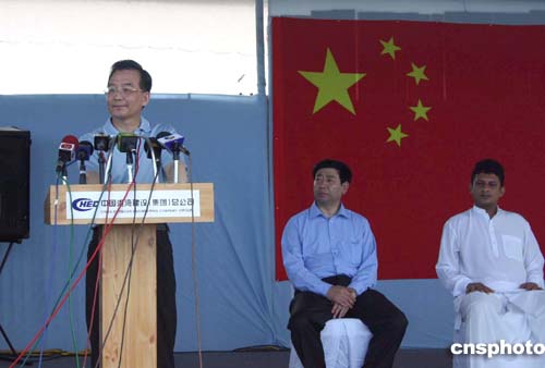 图:温家宝出席斯里兰卡受损渔港重建仪式