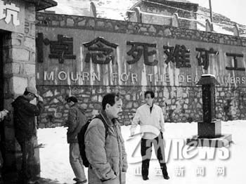 《蚂蚁士兵》的主角奥村和一在当年日本投降后曾被其部队长官和阎锡山密谋收编到国民党军,后来被解放军俘虏送到大同云冈一带的煤矿进行劳动改造。按照奥村的回忆,只记得当时的煤矿距云冈石窟四五里的样子,前面有一条小河,坑口是一个漏斗状的出口。根据初步判断,池谷一行来到晋华宫煤矿附近寻访查证。在大同煤矿万人坑二战历史研究会会员苗日茂的带领下,大家找到了一位曾清楚地记着当年情景的85岁老矿工韩有泰。据他回忆,1949年,附近的东沙嘴煤矿确实有一批战俘在这里被劳动教养。他还清楚地记得,当时解放军为了发扬国际人道主义精神,特意安排了日籍战俘在相对安全的地方“背矿”。他们大约在此干了一年又被带走。根据韩有泰的指点,在苗日茂老人的带领下,一行人不顾雨雪路滑,步行上山寻找当年东沙嘴矿的遗址。将近黄昏的时候,在一个山沟大家找到了这个往日的坑口。由于年代久远,坑口已经塌陷,但漏斗状的外观还依稀可辨。周围有一些破存的小屋,而这些地方正是当年矿工栖息的场所。(记者郭斌文/图)