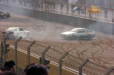几万名观众观看了《头文字D》电影中的飘移比赛,在电影中使用的四辆赛车AE86、EVO、FC、GTR专门从香港运送过来,四辆赛车在跑道中呼啸着做各种转弯和飘移的动作,随着一道道青烟的升起,全场立即沸腾起来。