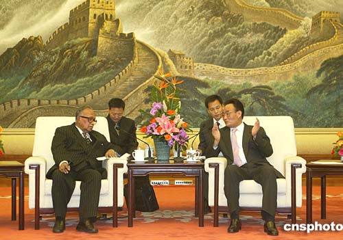 图:吴邦国与孟加拉国民议会议长西尔卡举行会谈