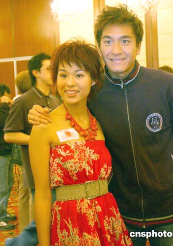 身穿露肩装的胡杏儿与马国明,近日出席无线剧集宣传记者会。作者:谭达明