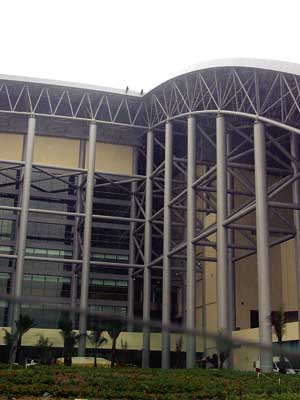 现场为路氹新填海区“澳门蛋”体育馆建筑工地,楼高约六十米,天顶距地面有十八层楼高,因工程需要,体育馆基本全由巨型铁通组成,三名内地劳工攀上天顶平台外“要跳”,不时在天顶上走来走去,或坐在栏河旁边,险象环生。消防员在地面开动多个巨型气垫戒备。而在天顶上,救护人员及谈判专家亦需配用安全带做足安全措施方可进行劝吁及救援准备工作。