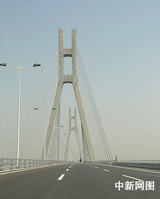 中新社扬州四月十四日电(记者陈旻)连接扬州和镇江的润扬长江大桥将在今年的五月正式通车,具体时间尚未最后确定。今天上午,记者来到已经全线贯通的润扬大桥,提前感受这座世界级桥梁的风采。