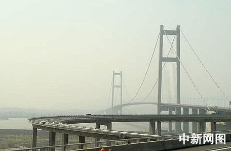 据介绍,润扬大桥是目前长江上首座由斜拉桥和悬索桥两种桥型组合而成的桥梁,其南汊桥为跨径一千四百九十米的单孔双铰钢箱梁悬索桥,是目前“中国第一,世界第三”的大跨径悬索桥。