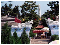 刘公岛的主峰叫旗顶山,海拔153米,海岛四周岩石裸露,岛上峰峦叠翠,景色优美,空气清新,素有"海上桃源"之称。"千里绝尘埃,此间即洞天"是刘公岛最好的写照。沿环山路绕岛而行,不仅可以参观各景点,还可饱览海天一色的美丽风光。