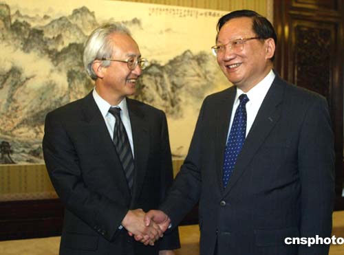 在谈到中国政府的对日政策时,唐家璇说,胡锦涛主席和温家宝总理去年与小泉首相会晤时强调,我们希望中日两国和平共处,世代友好,互利合作,共同发展。基于这样的方针政策,中方希望日本保持繁荣和发展,理解日本要在国际社会进一步发挥重要的积极作用的愿望。温家宝总理不久前在人大记者招待会上提出改善和发展中日关系的“三个原则”和“三点建议”,向日方发出了一个明确信息,即在“以史为鉴、面向未来”的基础上,与日本加强合作,谋求共同发展。