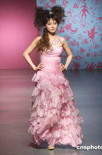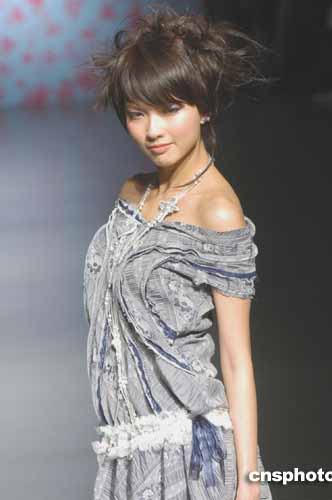乐坛组合2R成员4月16日在香港为著名时装设计师尹泰尉时装演译作品。作者:邓庆乐