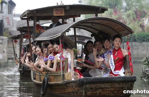 二零零五年国际旅游小姐中国区总决赛的选手,四月十七日游览千年古镇西塘。春光明媚,古镇美女,相映生辉。作者:毛建军