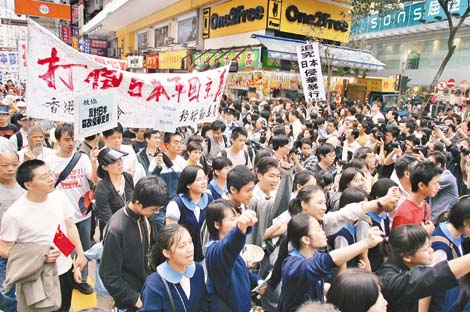 中新网4月18日电 据香港文汇报报道,上万名香港市民昨日以游行反对日本右翼团体篡改历史教科书,反对日本侵占中国领土钓鱼岛,反对日本成为联合国常任理事国。