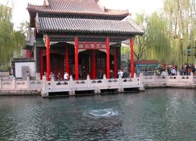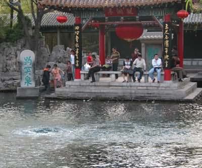 趵突泉位于济南老城西南,是济南“七十二泉”之首,水恒温18摄氏度,三只泉眼,“泉源上奋,水涌若轮”,景色奇特。据载康熙皇帝南巡时,为其提写了“激湍”御书。乾隆更喜爱趵突泉,将其封为“天下第一泉”。