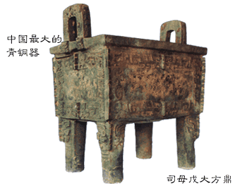 商周两代是我国铸造和使用青铜器的鼎盛时期。1939年3月,在安阳殷墟武官村出土一件司母戊方鼎,形体之大,造型之精,世所罕见,是世界绝无仅有的国宝。现藏中国历史博物馆。
