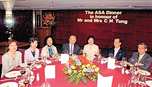 昨日的晚宴筵开二十五席,当中被安排坐在首席的十六人,除董建华夫妇、曾荫权夫妇外,尚包括房屋规划及地政局局长孙明扬、政制事务局局长林瑞麟、公务员事务局局长王永平、新闻处处长蔡莹璧、行政长官私人秘书叶文辉,以及前政务司司长陈方安生夫妇等。而一些前政府高官如吴荣奎、萧烱柱、黄星华、蓝鸿震、余黎青萍、霍罗兆贞等亦有出席。