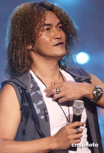 来自台湾的“摇滚”歌手迪克牛仔,在福建石狮市举行的《卡宾?卡宾!》时装设计作品户外汇演上演唱助兴。第八届海峡两岸纺织服装博览会目前正在福建石狮市举行。作者:钱兴强