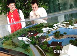 美国洛杉矶著名的杭廷顿博物院花园内正在兴建一座中国苏州园林,图为游客欣赏其精致的模型。作者:贾国荣