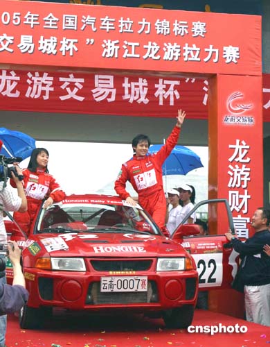 2005年全国汽车拉力锦标赛第二站比赛23日在浙江龙游举行﹐来自国内的20余支车队﹑66辆赛车将在两天内的428.91公里的赛道上角逐﹐影视红星林志颖加盟红河车队出战。作者:赵振清