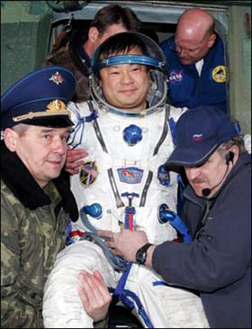 返回地面的沙里波夫和美国华裔宇航员焦立中是国际空间站第十长期考察组成员,共在空间站工作了193天。他们进行了两次太空行走,迎接了两艘俄“进步”货运飞船,并进行了60多项科学实验。意大利宇航员维托里是对空间站进行短期访问的。