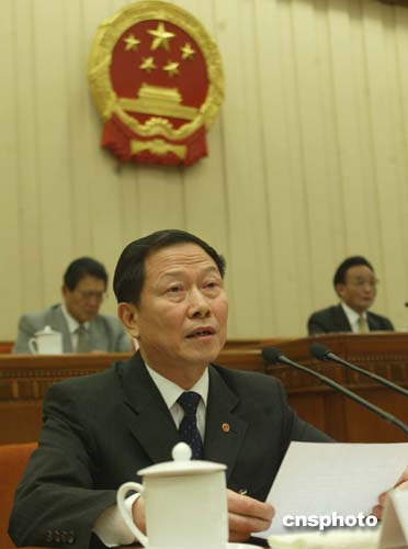 四月二十六日,国务院国有资产监督管理委员会主任李荣融在北京人民大会堂作《关于国有资产监管和国有企业改革情况的报告》,提请十届全国人大常委会第十五次会议审议。作者:史利