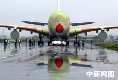 装有4个引擎的巨无霸可以乘坐840名旅客,连续飞行1.5万千米,被认为是对波音747在巨型客机市场的挑战。