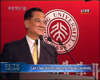 连战说,北京大学是我们大学里面的翘楚,也是中国现代新思潮的发源地。蔡元培先生有两句名言:寻思想自由的原则,取兼容并包之意。这种自由包容的校风之下,长久之下北大为这个国家、为这个社会培育了很多精英分子。尤其在国家、民族需要的时候,可以说都是能够挺身而出,各领风骚。不但为整个国家民族和社会做了很大的贡献,还展示了中国知识分子那种感时、伤时、忧国的情况。