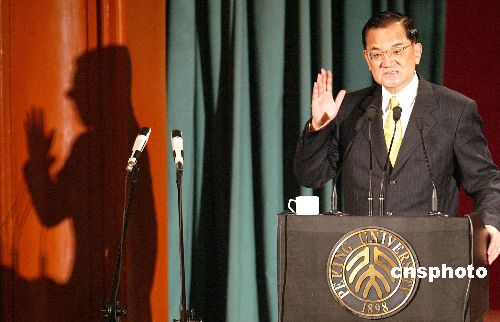 学生:您好,我是来自北京大学政府管理学院的硕士生,我们北大学子对您的大陆之行一直非常期待,记得在4天前当您乘坐的飞机刚刚降落在南京的禄口机场时您曾发表感言,真是有一种相见恨晚的感觉,刚才您也提到现今的大陆已经跟您的记忆完全不吻合了,请问在时隔将近60年的时间,当您再踏上大陆的土地时,您眼前见到的和您记忆及想象有什么最大的不同?谢谢。