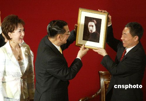 四月二十九日,中国国民党主席连战在北京大学发表演讲,并获赠具有特殊意义的北京大学纪念品。作者:廖文静