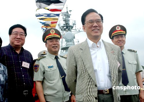 近中午时分,曾荫权等还与部分市民一起在礼堂欣赏了一台名为“红星耀香江”的小型歌舞表演,并登上一艘导弹护卫艇参观。他在听取艇长有关该艇的介绍后,肯定部队官兵为香港青少年树立了榜样和“保卫香港”所起的作用。