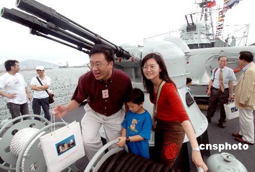 上午十时,部分香港青少年团体及学校师生约四千多人来到昂船洲海军基地,饶有兴趣地参观舰艇,观摩水兵文化生活,并进行联欢。